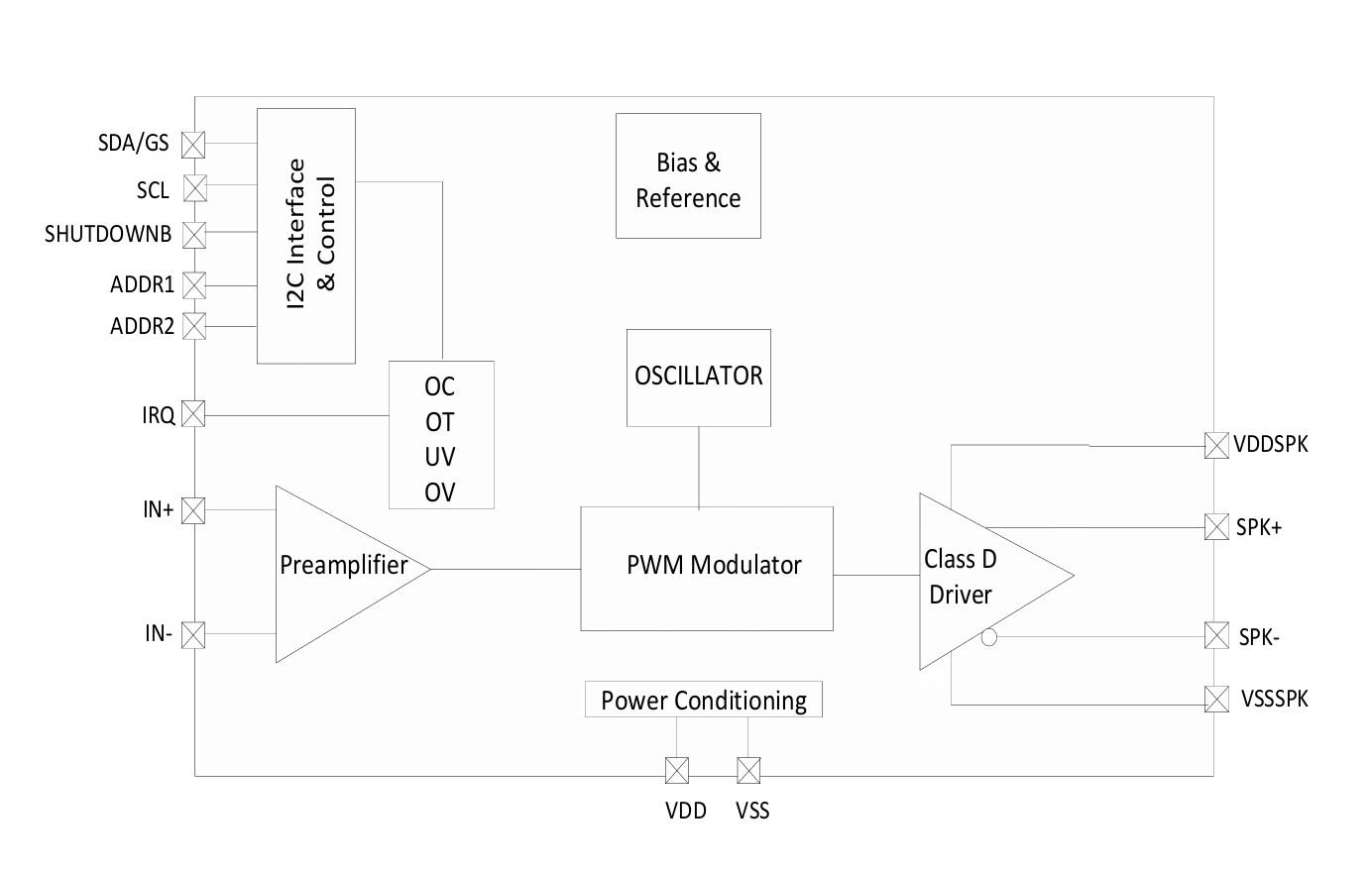 NAU82110YG 放大器透過(guò)展頻振蕩器技術(shù)及回轉(zhuǎn)率控制法,有效降低電磁干擾(EMI),因而不需使用外部輸出濾波器。此外,NAU82110YG 還提供優(yōu)異的抗干擾能力與在 217 Hz 時(shí)大于 83 dB 的電源供應(yīng)抑制比(PSRR)。其卓越的 103 dB 訊號(hào)噪聲比(SNR),使 NAU82110YGD 類(lèi)音頻放大器非常適合應(yīng)用于無(wú)線及調(diào)幅頻帶等產(chǎn)品中。