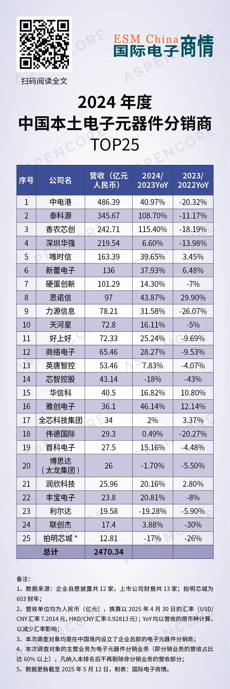 - 2024年度TOP25營收總和首次突破2400億大關(guān),創(chuàng)下本排名的歷史新高;
