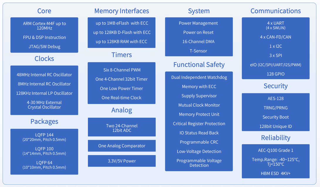 - 雙Bank Flash設(shè)計(jì)(1MB PFlash + 128KB DFlash):支持OTA遠(yuǎn)程升級(jí),便于功能迭代。