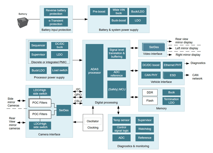 電子后視鏡需實(shí)時(shí)處理多路攝像頭數(shù)據(jù)、動(dòng)態(tài)調(diào)節(jié)背光、支持復(fù)雜環(huán)境下的低延遲顯示,并滿足嚴(yán)苛的車規(guī)安全標(biāo)準(zhǔn)。其核心需求包括: