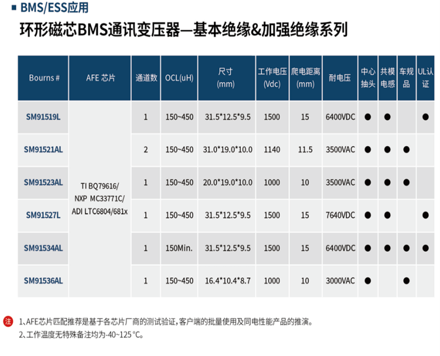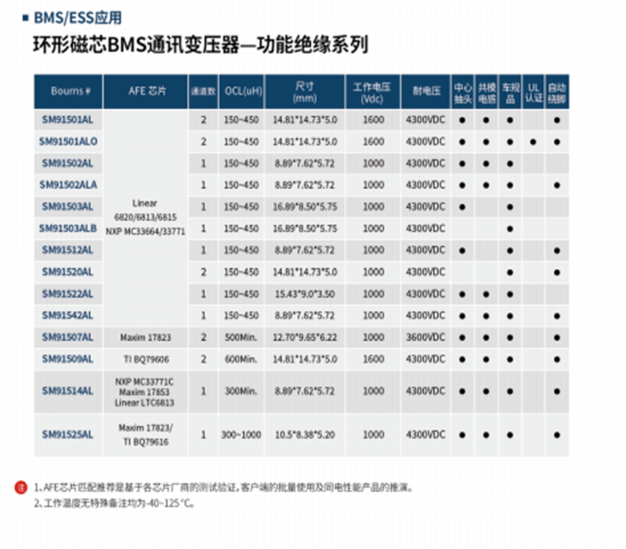 三、 Bourns信號類隔離變壓器與主流BMS芯片廠商設(shè)計方案