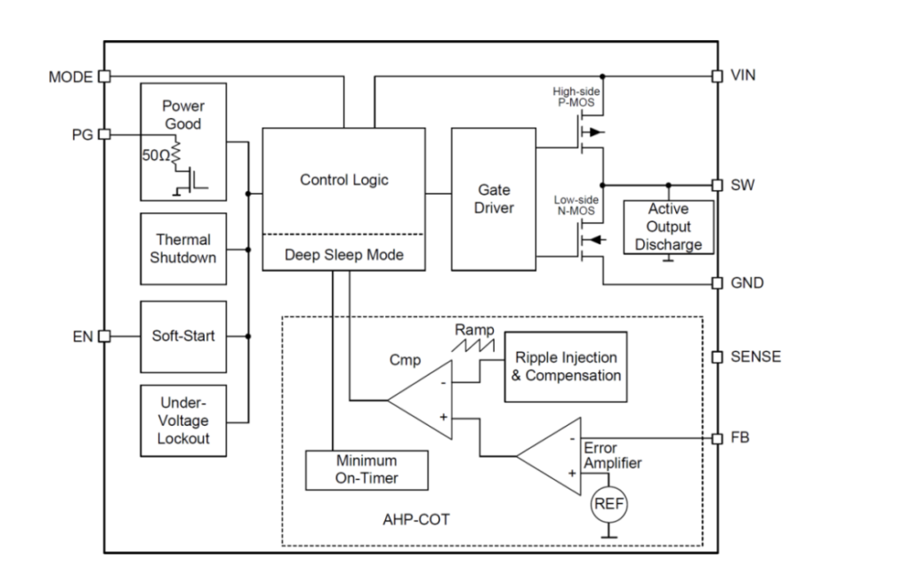 SGM61012是一顆低壓同步降壓型DC-DC轉(zhuǎn)換器芯片,采用了圣邦微電子全新研發(fā)的AHP-COT(Adaptive Hysteresis and Pseudo-Constant On-Time Control),具有超快的負載或線電壓瞬態(tài)響應(yīng)特點。