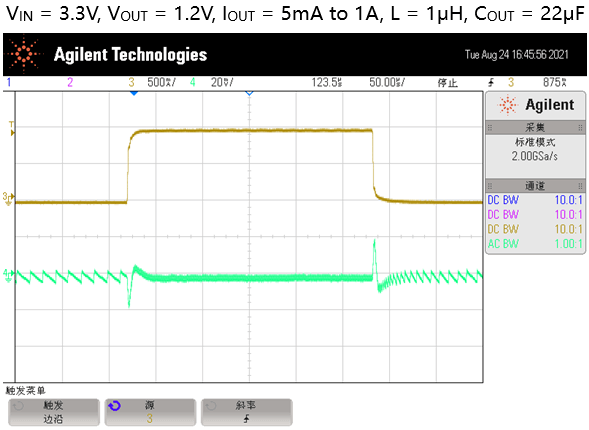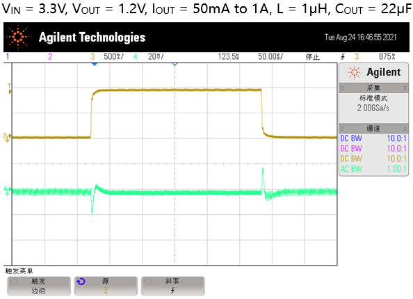 圖3SGM61012 5mA-1A及50mA-1A負載瞬態(tài)響應(yīng)波形