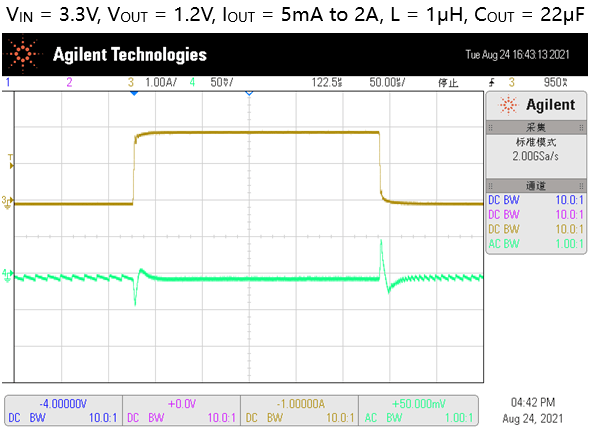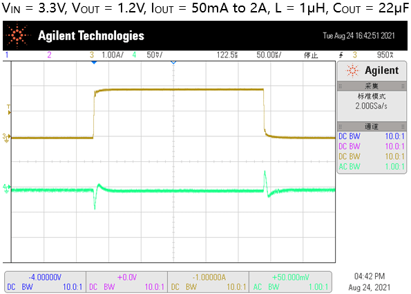 圖4 SGM61022 5mA-2A及50mA-2A負載瞬態(tài)響應(yīng)波形