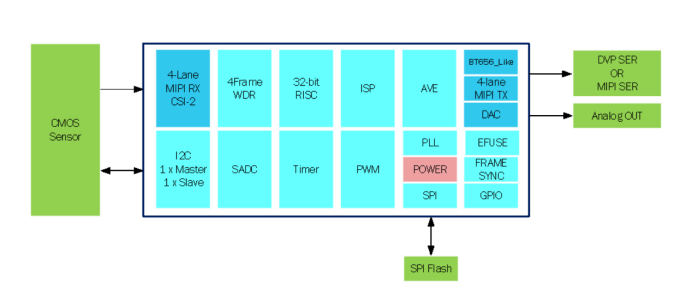 1、支持 MIPI CSI-2 輸入:支持 1/2/4 Lane Data 模式,最高支持速率 1.5Gbps