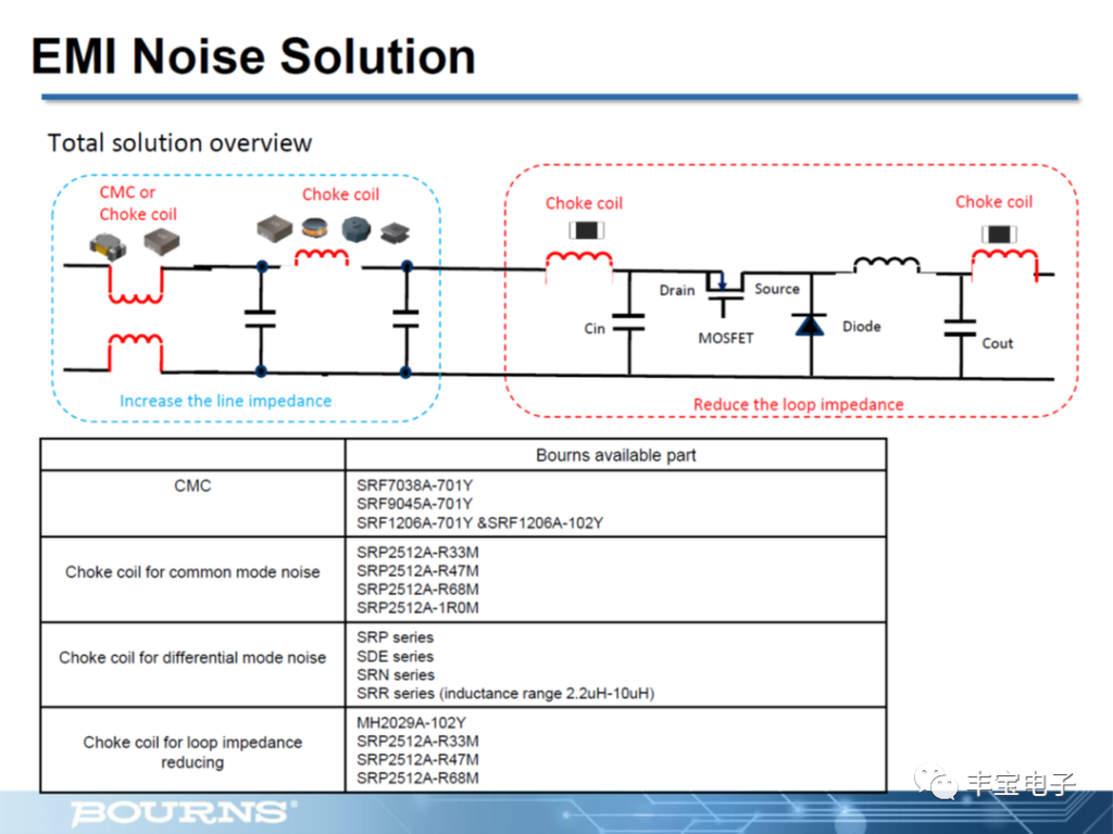 BournsEMI濾波器電源電路的總EMI噪聲解決方案可解決此問題。