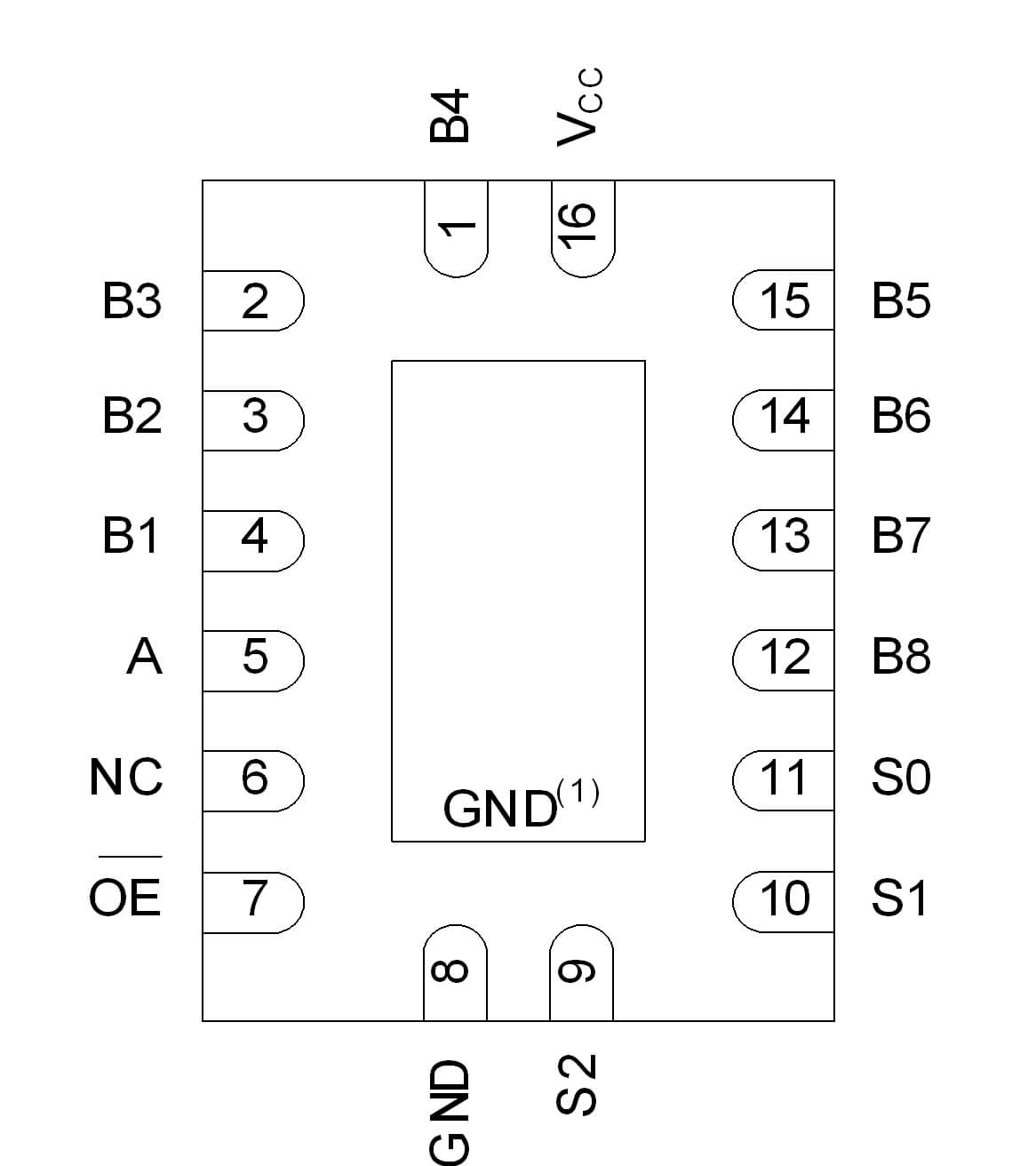 | AiP74CBTLV3251 | 1路8選1 (帶使能) | 2.3V~3.6V | -40℃~125℃ | SOP16 SSOP16 TSSOP16 VQFN16 |