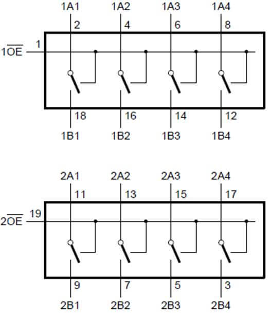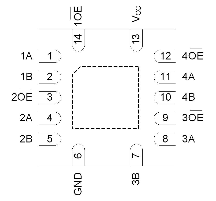 | AiP74CBTLV3125 | 4路1通道 (帶使能) | 2.3V~3.6V | -40℃~125℃ | SOP14 TSSOP14 SSOP16 |