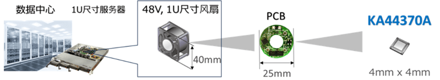 此次新推出的電機驅(qū)動器芯片,憑借新唐多年積累的高壓控制電路技術,在小型4mm x 4mm QFN封裝中實現(xiàn)100V耐壓的控制電路,并大幅減少了降壓調(diào)節(jié)器等外置部件(相較常用的24V 產(chǎn)品減少53%的部件)。減少功耗損失的同時,也使其適用于1U尺寸(40mm x 40mm)的風扇電機,從而提升高密度數(shù)據(jù)處理。