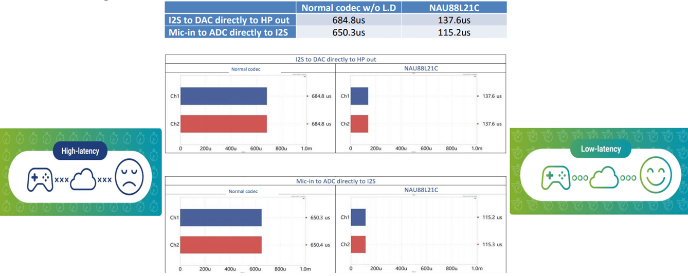 ? 普通 Codec 和 NAU88L21C 低延時(shí)比較