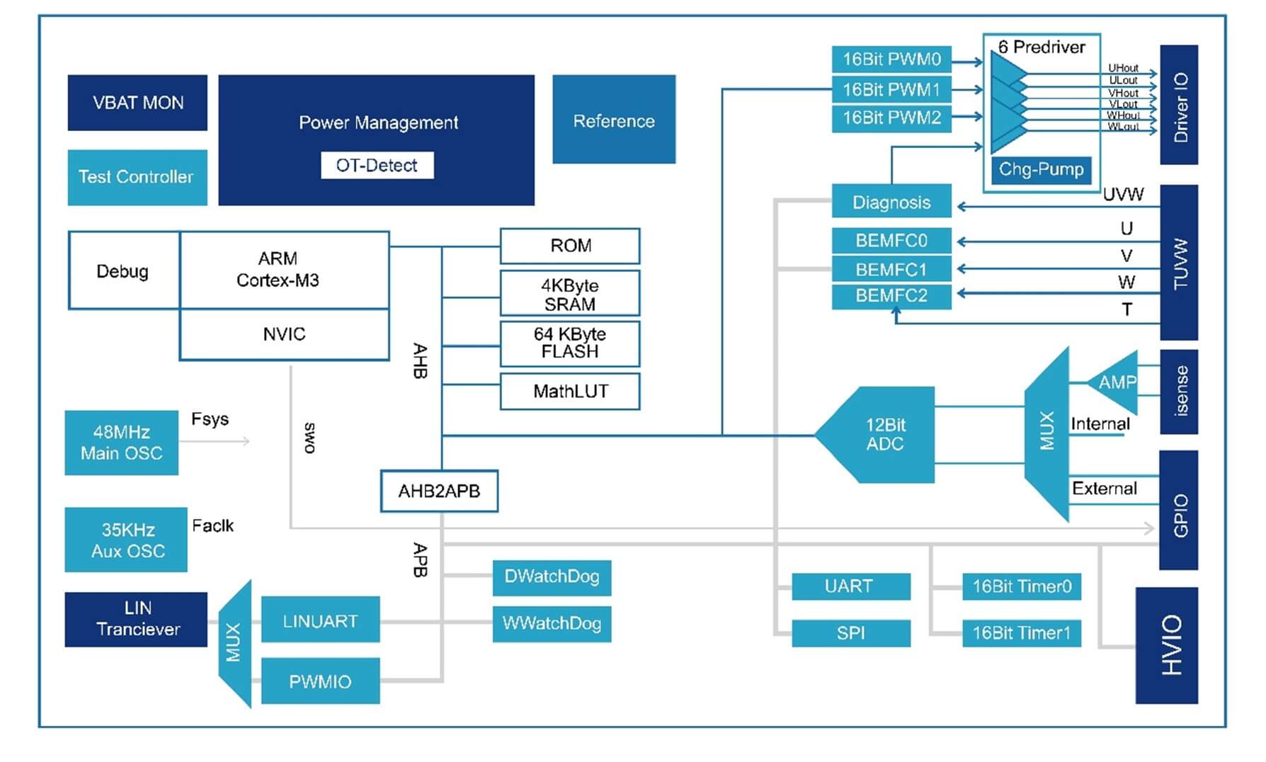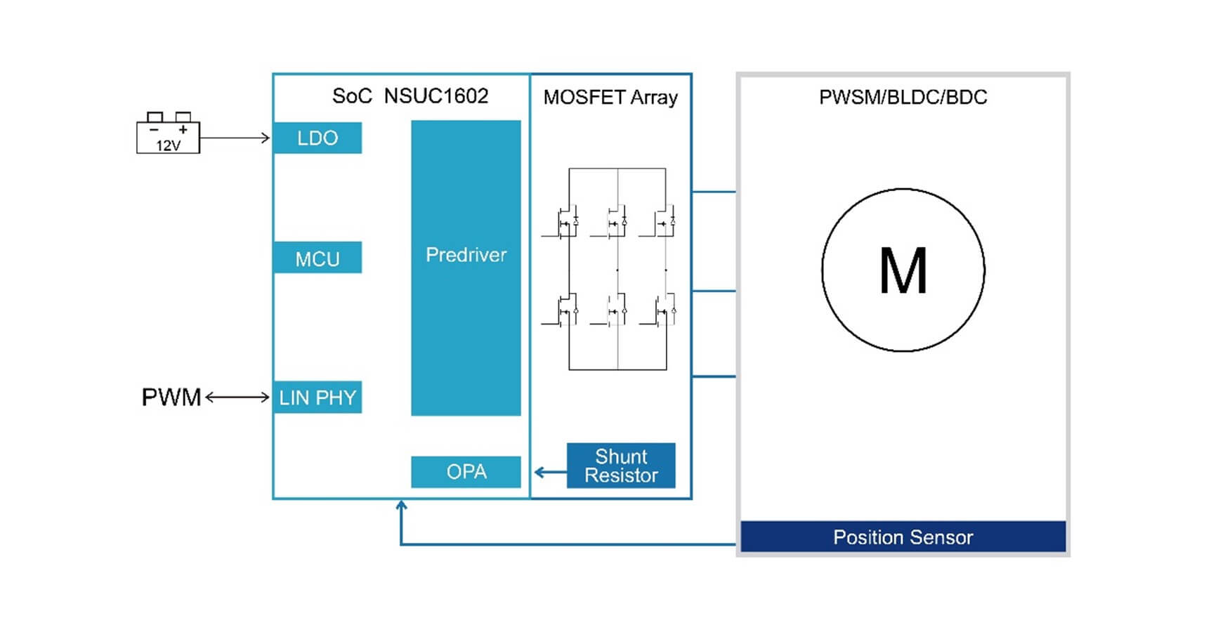 作為國內(nèi)汽車芯片供應(yīng)領(lǐng)域的佼佼者,納芯微繼 2023 年初在國內(nèi)率先推出車用小電機驅(qū)動 SoC NSUC1610 之后,于近期正式向市場推出具備高集成度的嵌入式電機控制 IC NSUC1602。相較于集成了 LIN 和 MOS 功率級的單芯片 NSUC1610,NSUC1602 這款集成式 SoC 創(chuàng)新性地采用支持外置獨立功率 MOSFET 的設(shè)計架構(gòu),這一獨具匠心的方案使其能夠游刃有余地應(yīng)對對電流需求更為嚴(yán)苛的應(yīng)用場景。