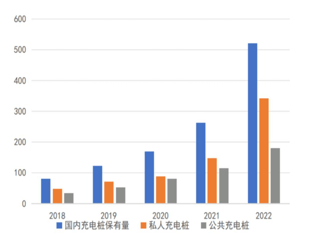 近年來(lái),國(guó)內(nèi)充電樁建設(shè)增速較快。2022年全年充電基礎(chǔ)設(shè)施增量為259.3萬(wàn)臺(tái),其中公共充電樁增量同比增加91.6%,隨車配建私人充電樁增量同比增加225.5%。截至2022年12月,全國(guó)充電基礎(chǔ)設(shè)施累計(jì)數(shù)量為521.0萬(wàn)臺(tái),同比增加99.1%。