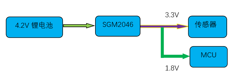 在智能手表項(xiàng)目中,客戶需要一顆超小型的LDO芯片,要求超低功耗,并且最好是一顆國(guó)產(chǎn)的,客戶供電部分采用了鋰離子電池供電,電池電壓4.2V,給客戶推薦了一顆圣邦微的SGM2046系列的LDO做降壓,降壓至3.3V給外部傳感器供電,工作時(shí)的電流需求500mA以上,另外一顆降壓至1.8V給MCU供電,電流要求100mA以內(nèi)。SGM2046是一款超小型封裝的LDO,尺寸只有0.8mm*1.2mm,非常適合小型化產(chǎn)品的應(yīng)用,并且SGM2046系列待機(jī)功耗非常低,小于1μA,又有超高電源抑制比,因此可更長(zhǎng)時(shí)間使用于小型化低功耗設(shè)備。