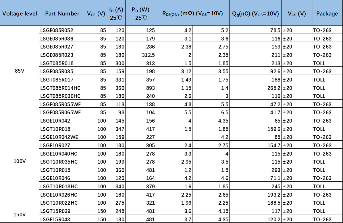 客戶的方案使用了16顆龍騰的SGT MOS LSGE10R040HC。100V 導通內(nèi)阻最大值4mΩ,封裝 TO-263。
