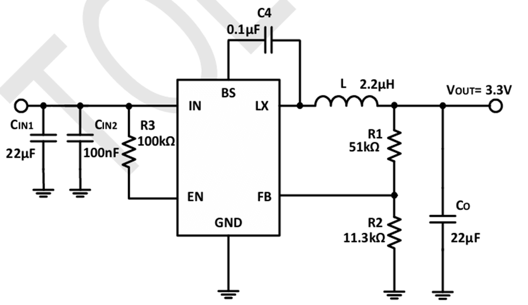 - 最大占空比可達96%,適用于2節(jié)鋰電池轉(zhuǎn)5/3.3V的應(yīng)用