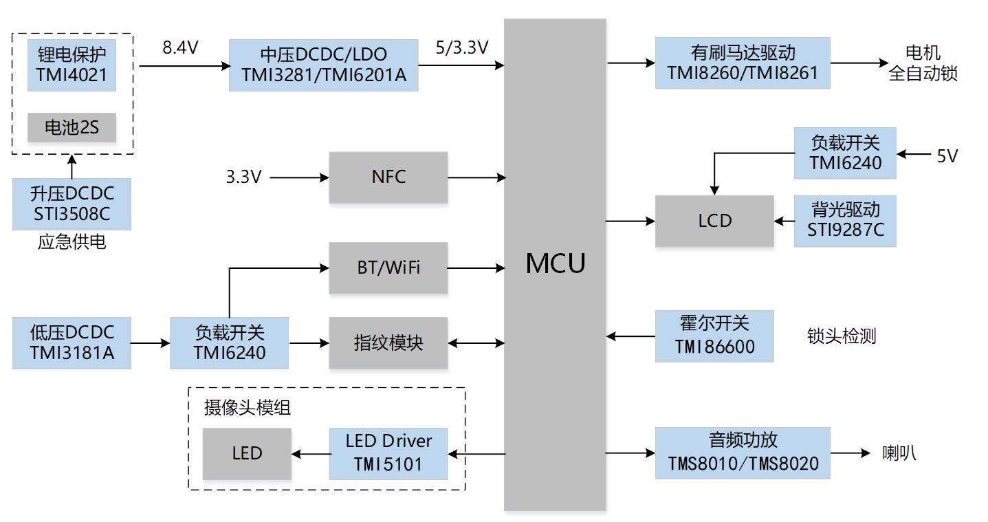智能門鎖的工作原理可以概括為三個關(guān)鍵環(huán)節(jié):身份識別系統(tǒng),通過指紋、密碼、NFC、人臉識別等多種方式對用戶身份進行驗證,識別正確身份信息后,系統(tǒng)會生成開鎖信號;控制單元, MCU為核心,配以存儲器、時鐘、按鍵等電子元器件,接收識別系統(tǒng)信號,驗證通過后發(fā)出開鎖指令;執(zhí)行機構(gòu),電機接收控制單元的指令后,帶動鎖芯轉(zhuǎn)動,實現(xiàn)開鎖、上鎖動作。