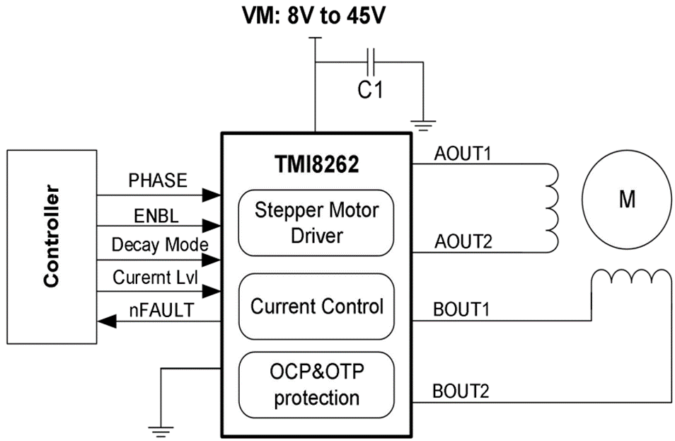 - 集成電流限制功能,控制電機(jī)輸出電流,控制力矩