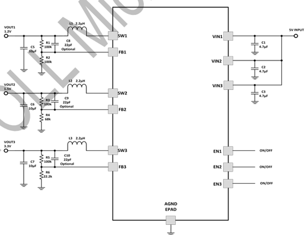 (3)PMIC TMI7003C 集成 3 路 1.5A DC/DC