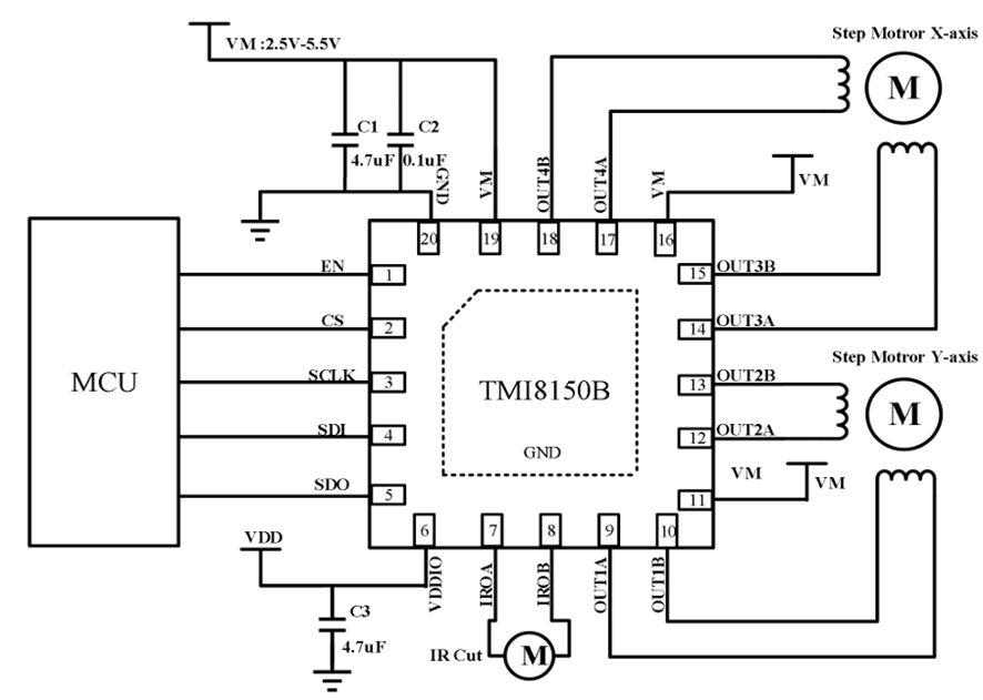 (1)高集成度步進馬達驅(qū)動TMI8150B